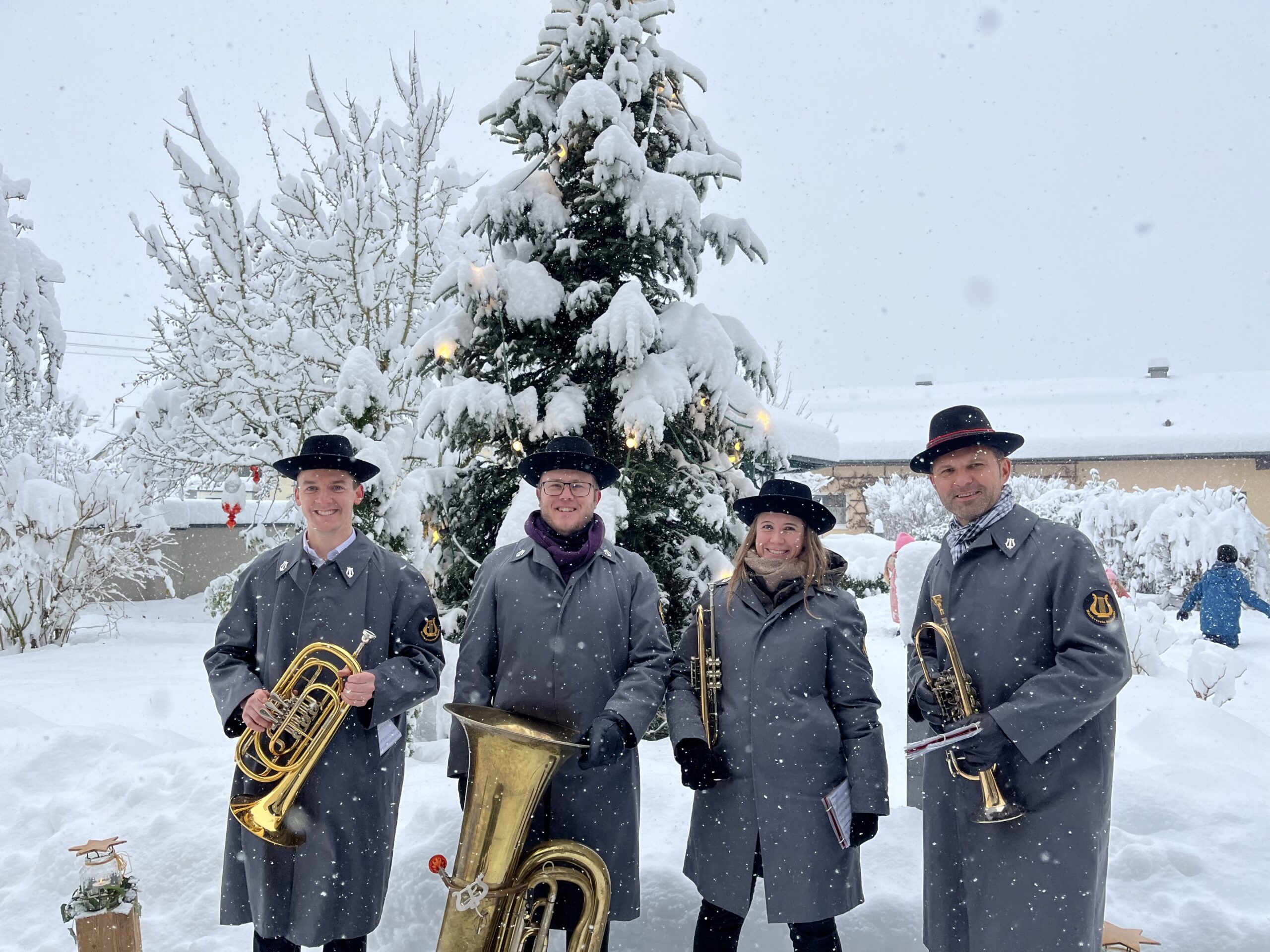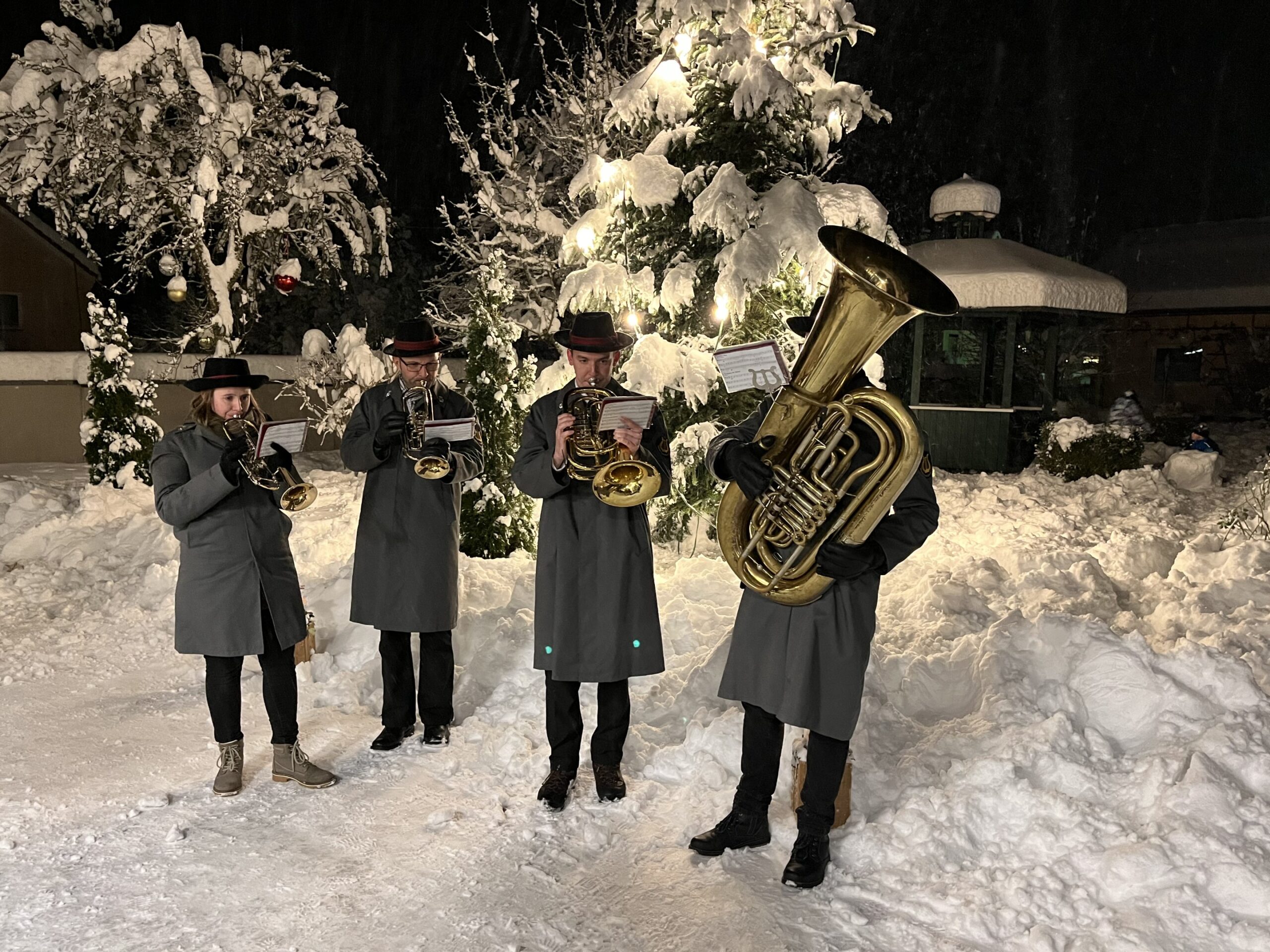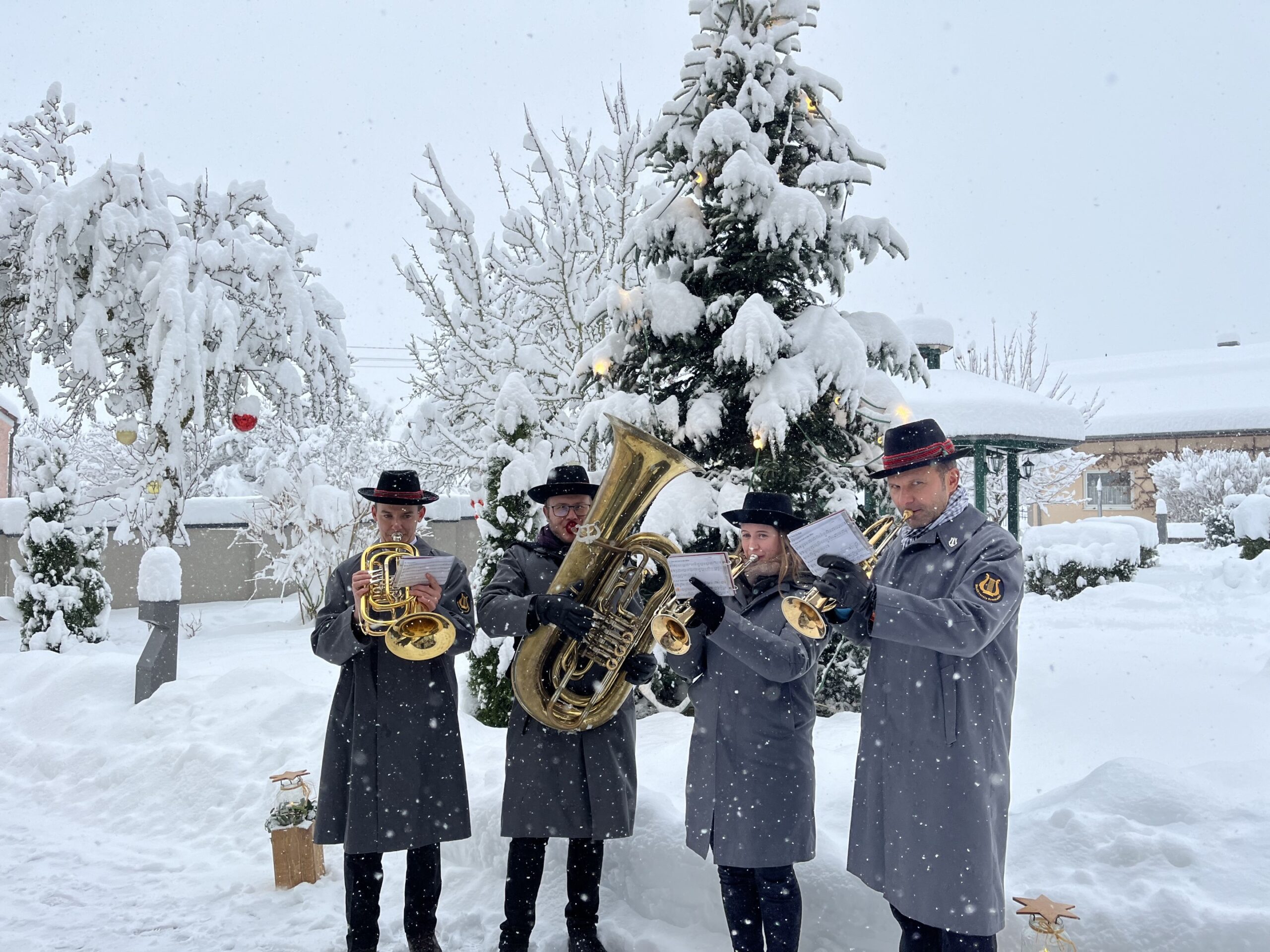 Trotz des maximalen Wintereinbruches fanden sich am ersten Dezemberwochenende vier motivierte Schneehasen zusammen, um gemeinsam den Christkindlmarkt in Bruckmühl musikalisch zu umrahmen. 🎺❄️🎅🏼